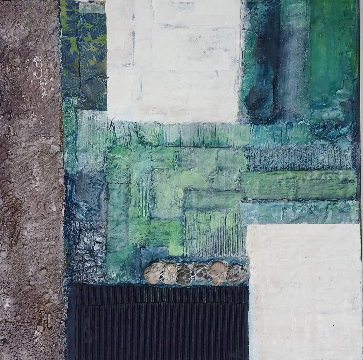 In questo pezzo ho voluto catturare l'armonia nascosta nel caos della natura e dell'anima umana. Attraverso texture grezze e oggetti riciclati, ho creato un dialogo tra materiali e colori freddi, avvolgendo chi osserva in una calma profonda e meditativa. Questa opera porta energia di rinascita e equilibrio in ogni ambiente, invitando a riflettere sulla bellezza della trasformazione.